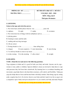NĂM HỌC: 2023 – 2024 MÔN: Tiếng Anh 8