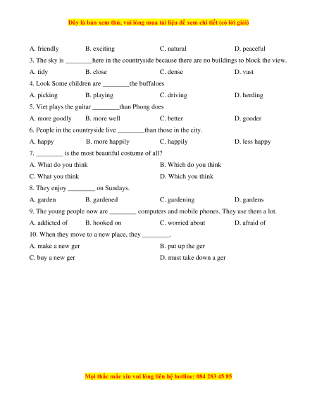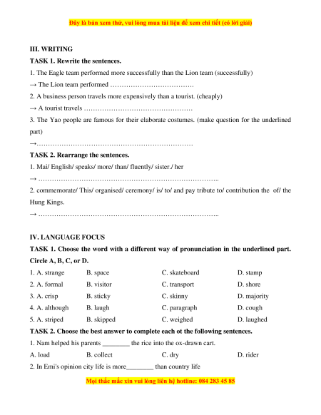 Đây là bản xem thử, vui lòng mua tài liệu để xem chi tiết (có lời giải)