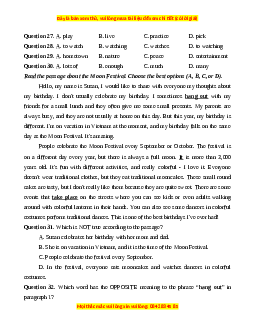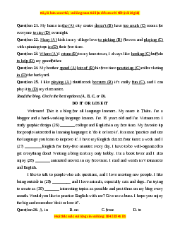 enjoy (28) _______ animated movies in my free time. I read and watch in Vietnamese and English.