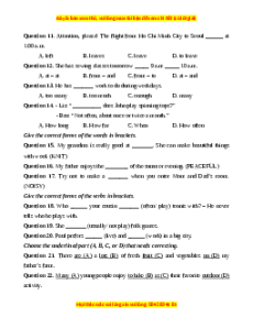 Question 11. Attention, please! The flight from Ho Chi Minh City to Seoul ______ at 1:00 a.m. A. left B. leaves C. leave D. to leave