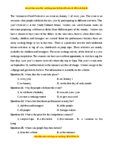 Question 33. Who is the lion dance performance mainly for? A. children and teenagers B. older people C. all people D. foreign visitors