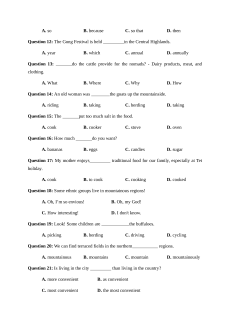 Question 20: We can find terraced fields in the northern___________ regions. A. mountainous B. mountains C. mountain D. mountainously