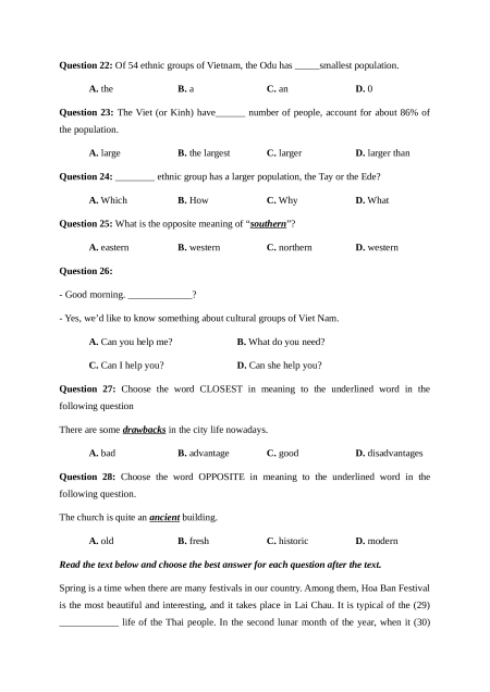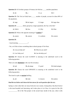 Question 22: Of 54 ethnic groups of Vietnam, the Odu has _____smallest population. A. the B. a C. an D. 0