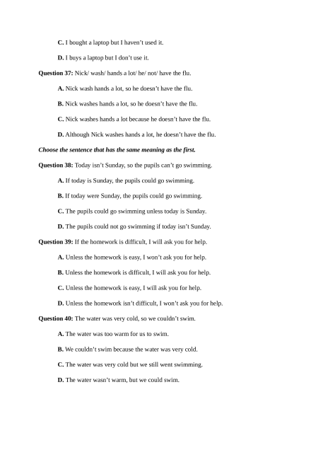 Question 36: I/ buy/ a laptop/ but I/ not use/ it.