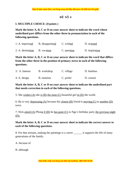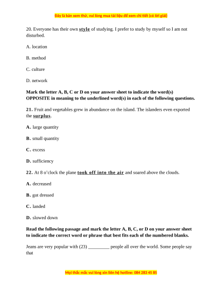 Đây là bản xem thử, vui lòng mua tài liệu để xem chi ết (có lời giải)