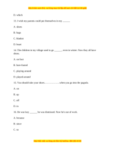 15. You should take your shoes……………….when you go into the pagoda. A. on B. up C. off D. in