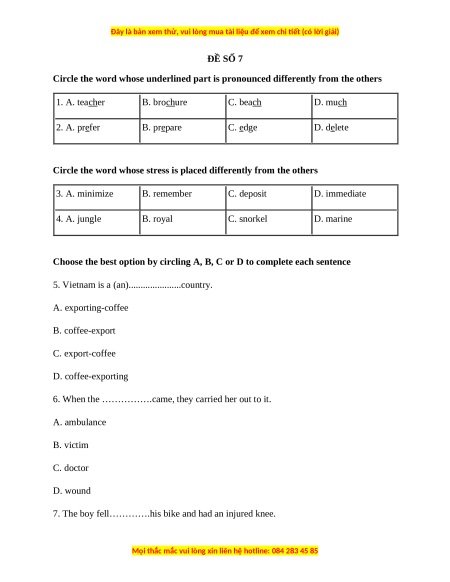 5. Vietnam is a (an)......................country. A. exporting-coffee B. coffee-export C. export-coffee D. coffee-exporting