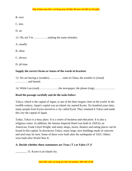 Đây là bản xem thử, vui lòng mua tài liệu để xem chi ết (có lời giải)