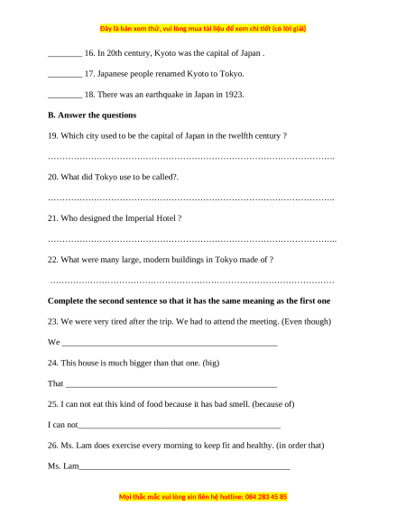________ 18. There was an earthquake in Japan in 1923. B. Answer the questions
