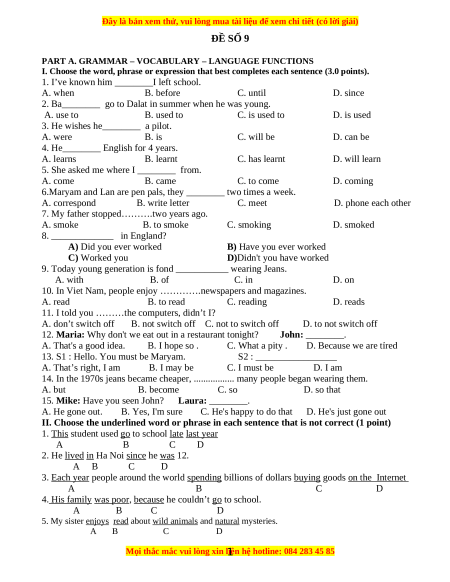 Đây là bản xem thử, vui lòng mua tài liệu để xem chi tiết (có lời giải)