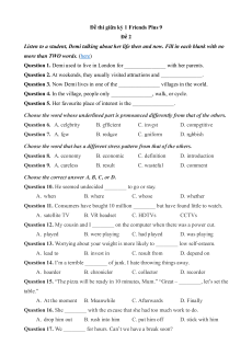 - Tailieugiaovien.com.vn giới thiệu bộ đề thi giữa kì 1 Tiếng anh 9 Friends Plus (kèm file nghe) mới nhất nhằm giúp Giáo viên có thêm tài liệu tham khảo ra đề thi Tiếng anh lớp 9.