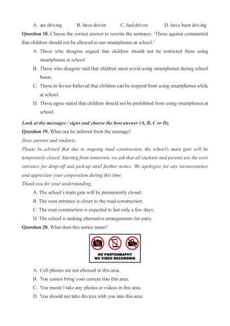 Look at the messages / signs and choose the best answer (A, B, C or D).