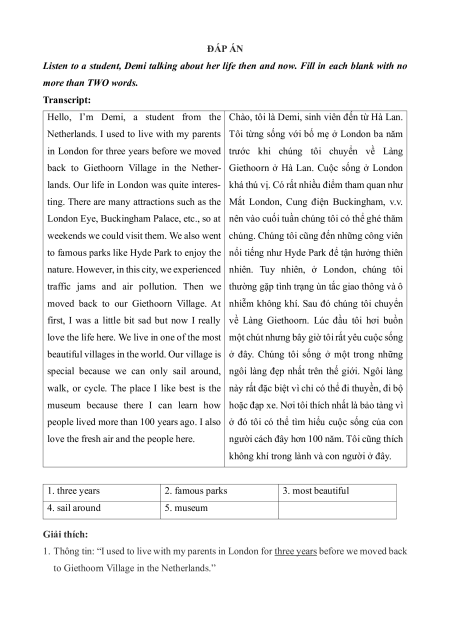 Listen to a student, Demi talking about her life then and now. Fill in each blank with no