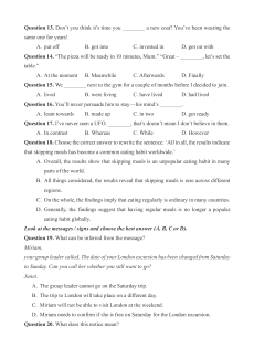 Question 14. “The pizza will be ready in 10 minutes, Mum.” “Great – ________, let’s set the table.” A. At the moment B. Meanwhile C. Afterwards D. Finally
