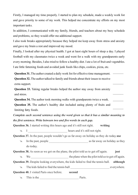 Question 33. Taking regular breaks helped the author stay away from anxiety and stress. _______