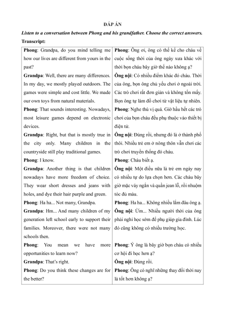 Listen to a conversation between Phong and his grandfather. Choose the correct answers.