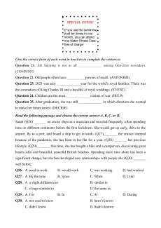 significant change, but she has developed new relationships with people she (Q30) _______ well before. Q26. A. used to work B. would work C. was working D. had worked Q27. A. By the time B. Since C. When D. Until
