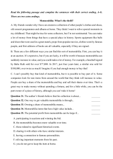Question 34. Memorabilia items that have high value include... _______