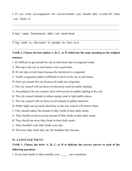 D. The more fatty foods they eat, the healthier they become. IV. LANGUAGE FOCUS