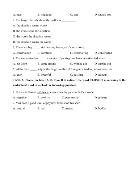 TASK 1. Choose the letter A, B, C, or D to indicate the correct answer to each of the following questions.