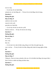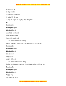 ĐÁP ÁN VÀ LỜI GIẢI: I. Hướng dẫn giải: Đáp án đúng: 1. draw 2. sing 3. dance 4. paint 5. play the keyboard Dịch: