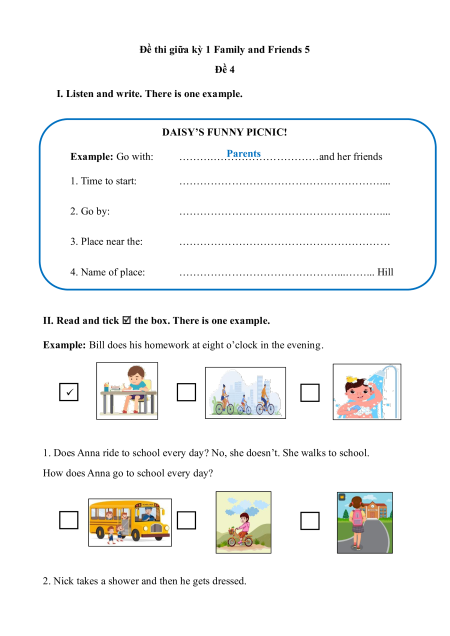 Đề thi giữa kỳ 1 Family and Friends 5 Đề 4