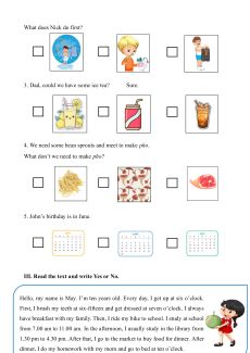 dinner, I do my homework with my mom and go to bed at ten o’clock. 0. Her name is May. Yes 1. May gets up at six thirty. _______