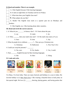 5. Nam _______ English because he likes learning languages. A. like B. likes C. liking IV. Look and write.