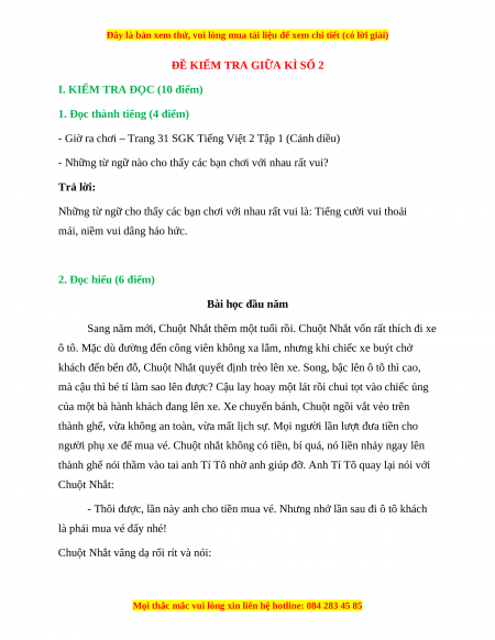 - Tailieugiaovien.com.vn giới thiệu bộ đề thi giữa kì 1 Tiếng Việt lớp 2 Cánh diều mới nhất nhằm giúp Giáo viên có thêm tài liệu tham khảo ra đề thi Tiếng Việt lớp 2.