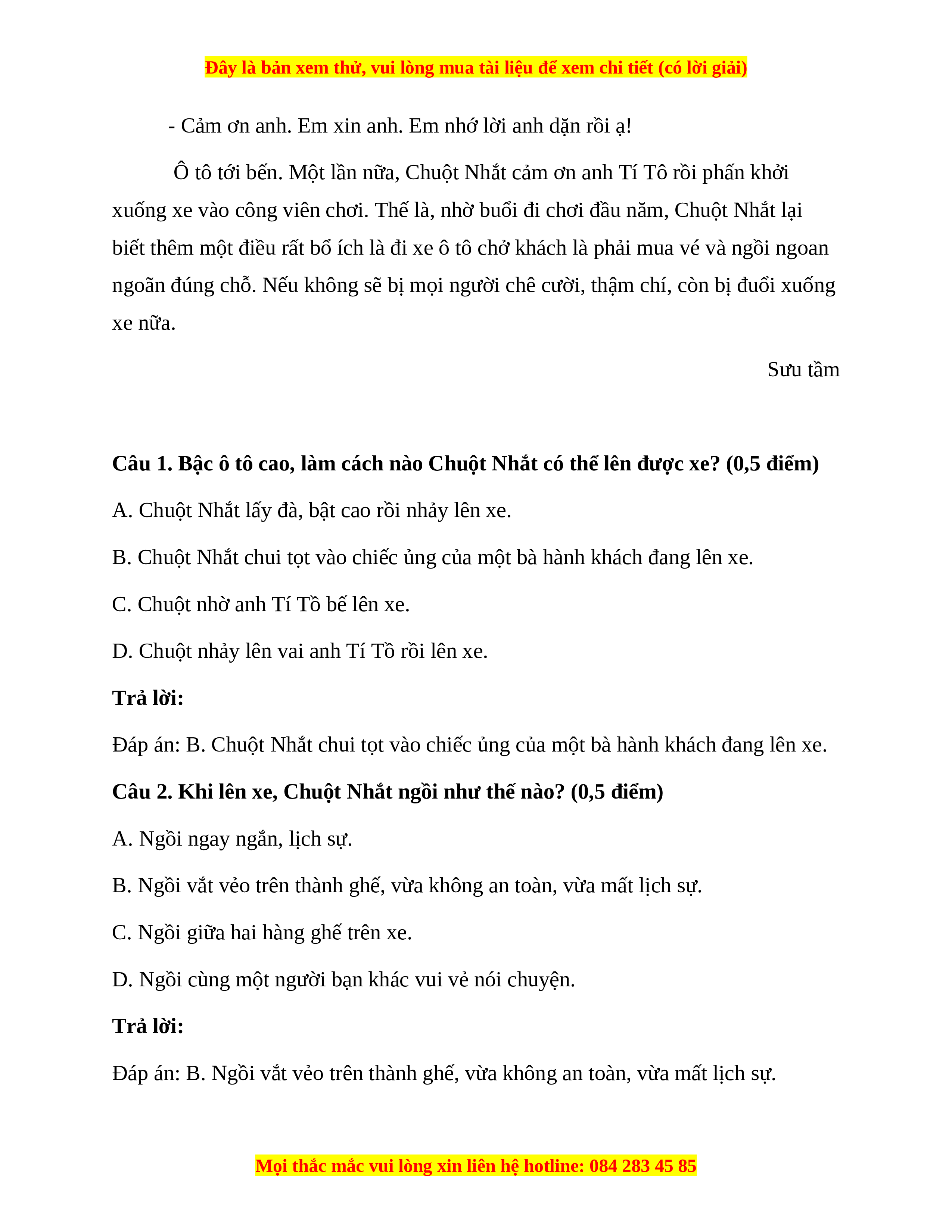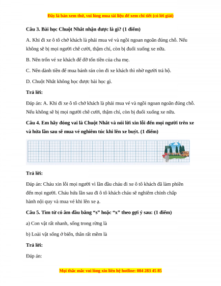 và hứa lần sau sẽ mua vé nghiêm túc khi lên xe buýt. (1 điểm) Trả lời:
