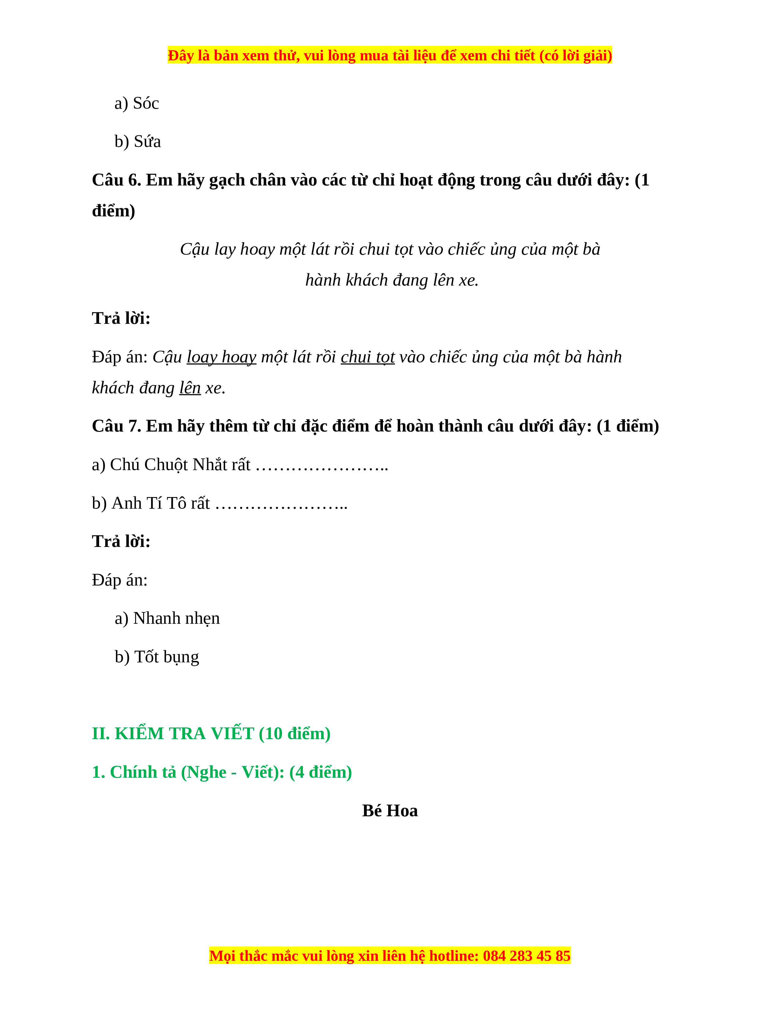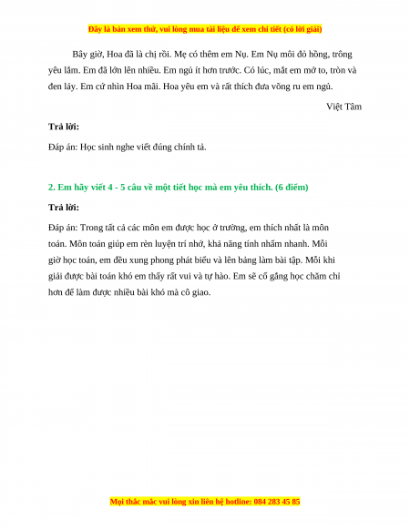 1. Chính tả (Nghe - Viết): (4 điểm) Bé Hoa