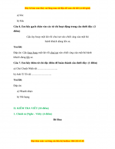 Câu 6. Em hãy gạch chân vào các từ chỉ hoạt động trong câu dưới đây: (1 điểm)
