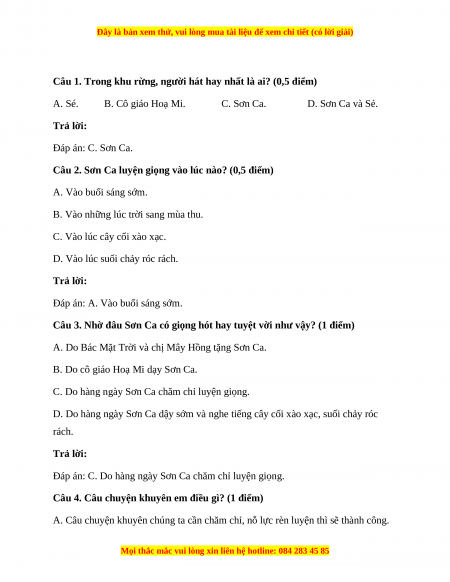Câu 2. Sơn Ca luyện giọng vào lúc nào? (0,5 điểm) A. Vào buổi sáng sớm.