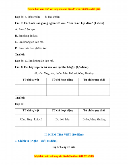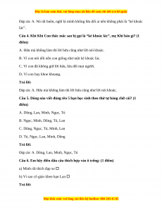 Câu 7. Cách nói nào giống nghĩa với câu: “Em có ăn kẹo đâu.” (1 điểm) A. Em có ăn kẹo. B. Em đang ăn kẹo. C. Em không ăn kẹo mà.