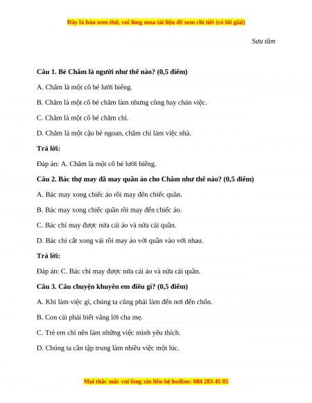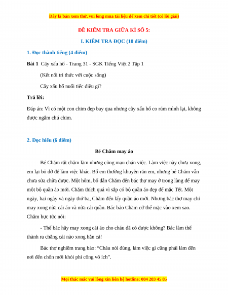2. Đọc hiểu (6 điểm) Bé Chăm may áo