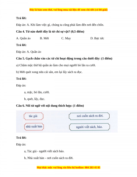 Câu 6. Nối từ ngữ với nội dung thích hợp: (1 điểm) Trả lời: Đáp án: