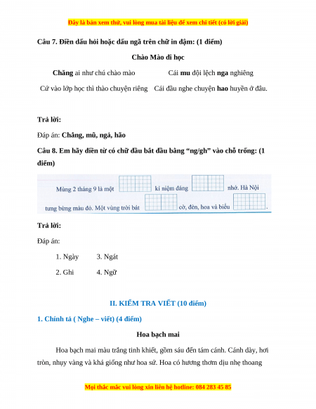 1. Chính tả ( Nghe – viết) (4 điểm) Hoa bạch mai