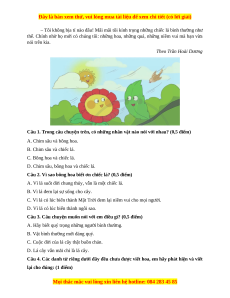 Câu 1. Trong câu chuyện trên, có những nhân vật nào nói với nhau? (0,5 điểm) A. Chim sâu và bông hoa. B. Chim sâu và chiếc lá. C. Bông hoa và chiếc lá.