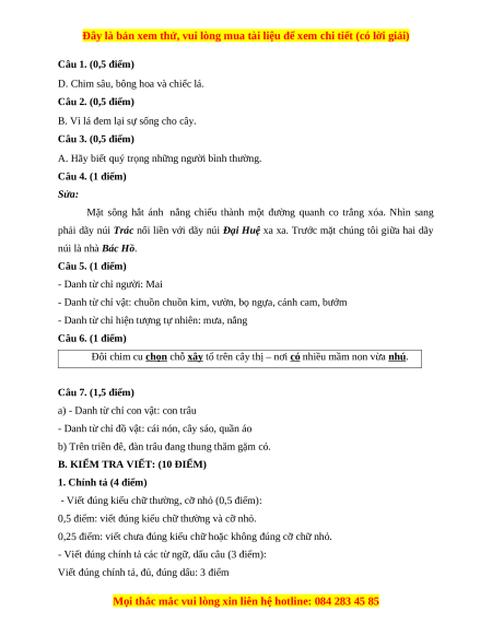 B. PHẦN KIỂM TRA VIẾT: (10 điểm)