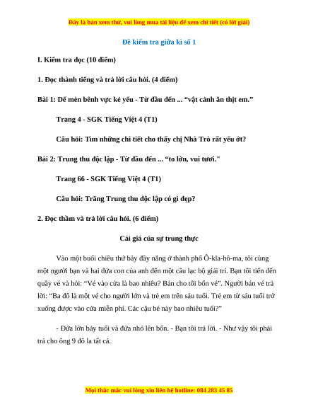 1. Đọc thành tiếng và trả lời câu hỏi. (4 điểm)