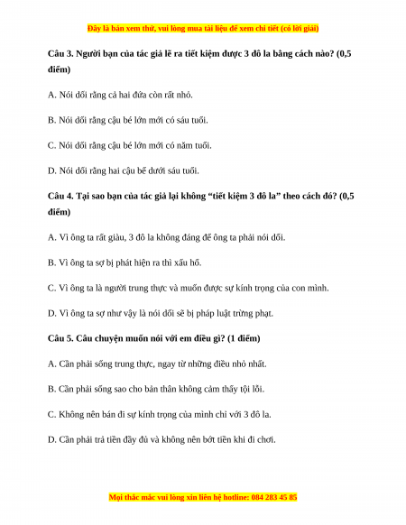 Câu 5. Câu chuyện muốn nói với em điều gì? (1 điểm)