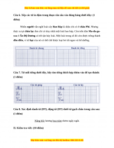 Câu 7. Từ mỗi tiếng dưới đây, hãy tìm tiếng thích hợp thêm vào để tạo thành: (1 điểm)