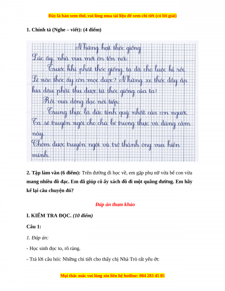 I. KIỂM TRA ĐỌC. (10 điểm)