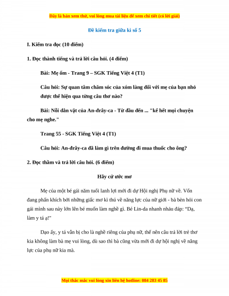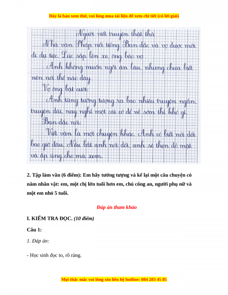 I. Kiểm tra đọc (10 điểm)