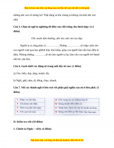 Câu 5. Chọn từ ngữ in nghiêng để điền vào chỗ trống cho thích hợp: (1,5