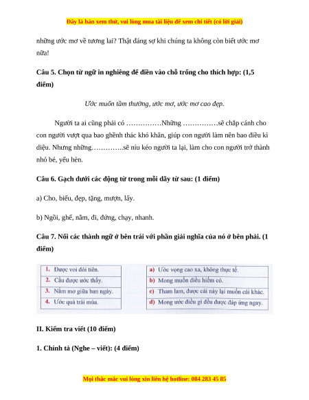 II. Kiểm tra viết (10 điểm)