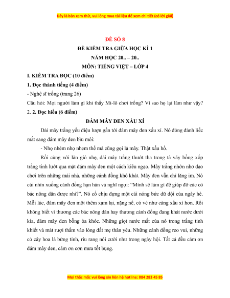 Đề thi giữa kì 1 Tiếng Việt lớp 4 Kết nối tri thức (đề 8)