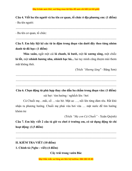 - Ba tên cơ quan, tổ chức: Trường Tiểu học Lê Lợi, Sở Y yế huyện Tam Nông. Câu 5.
