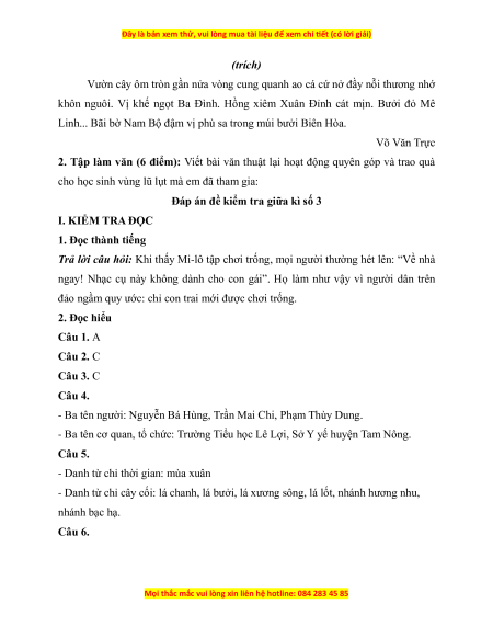 Đáp án đề kiểm tra giữa kì số 3 I. KIỂM TRA ĐỌC