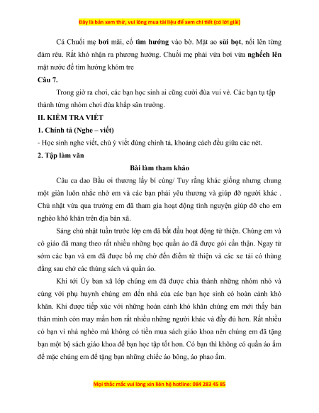 2. Tập làm văn (6 điểm): Viết bài văn thuật lại hoạt động quyên góp và trao quà